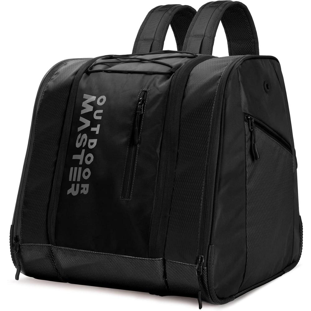 OutdoorMaster 38L Ski Boot Bag, Air Travel Snowboard Boot Backpack with Waterproof Bottom for Ski Helmet, Goggles and Gloves(Black)