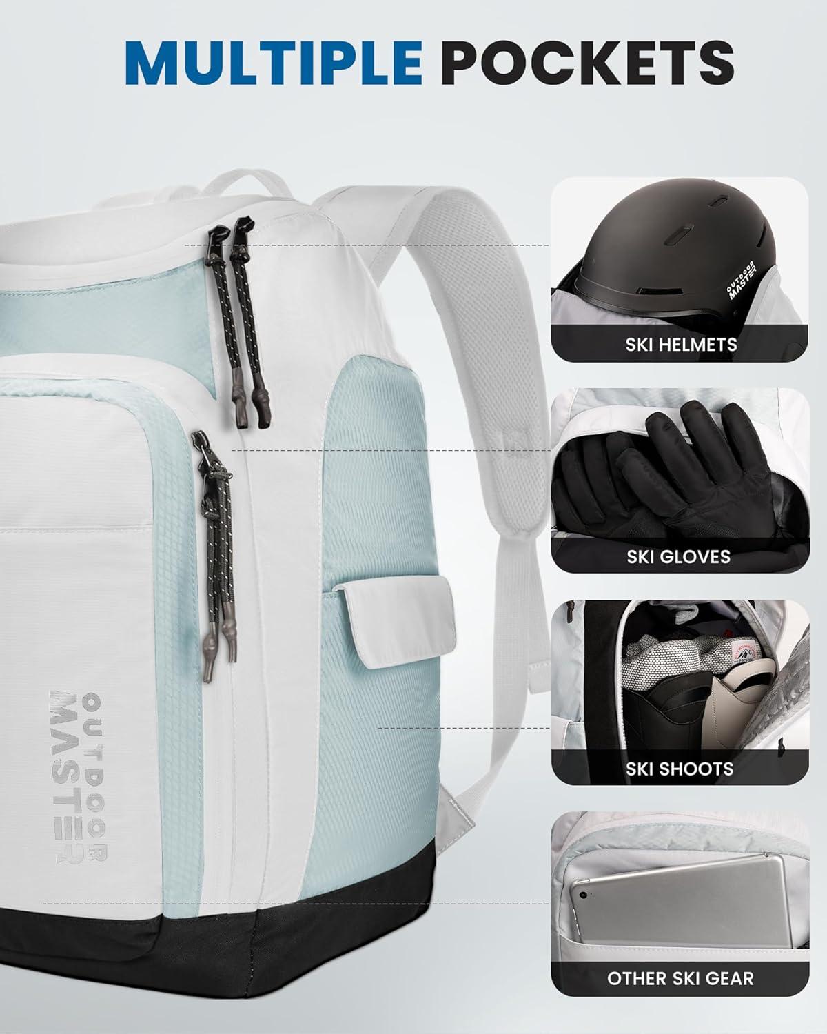 Waterproof & Scratch-Resistant & Anti-slip: OutdoorMaster ski bag is constructed from high-quality nylon material, ensuring sturdy and durable, splash-resistance. The bottom of the ski backpack offers excellent waterproofing and anti-slip properties, guaranteeing your gear stays dry and protected even in wet snow conditions